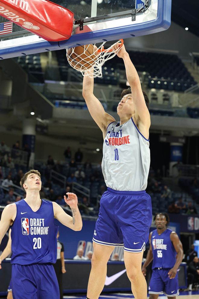 以目前的选秀行情来看,杨瀚森极有可能会在首轮末or次轮初被选中。